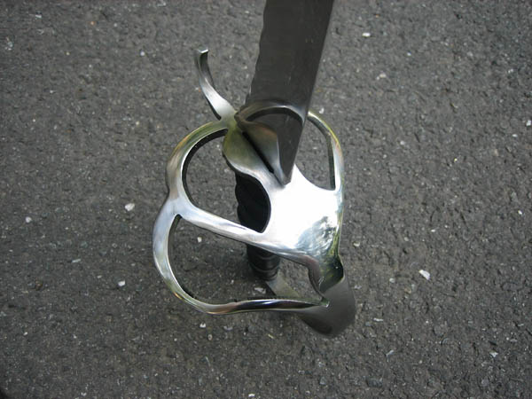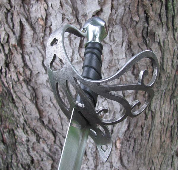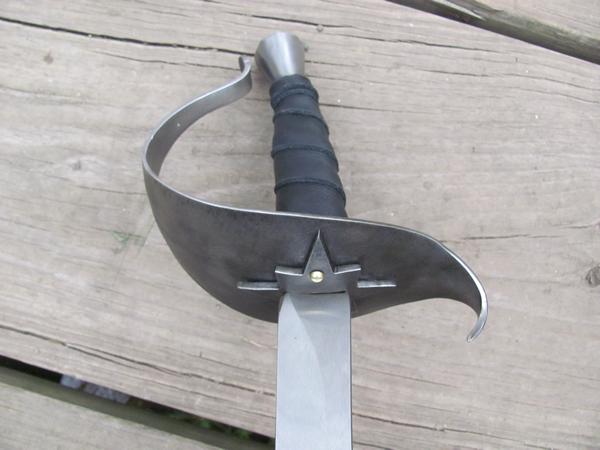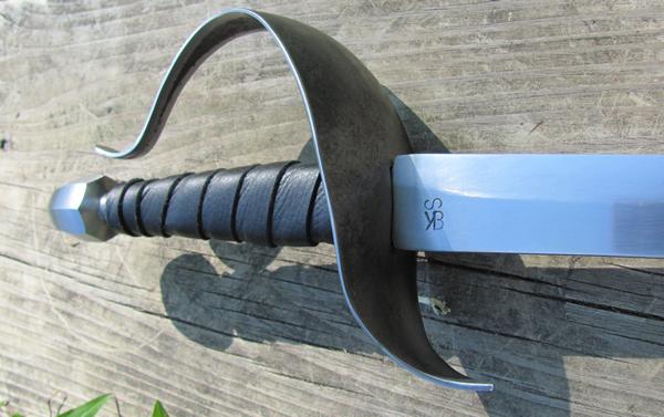 Our triple loop cutlass guard on a 28" stage combat blade.