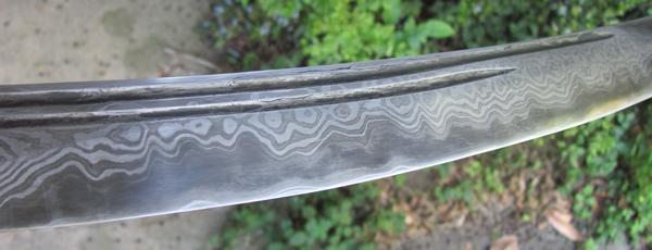 The blade features hand ground double fullers and a "not so" false edge. Meaning it is sharp.