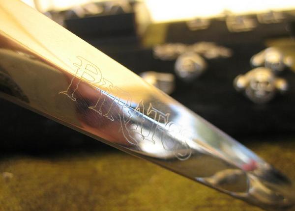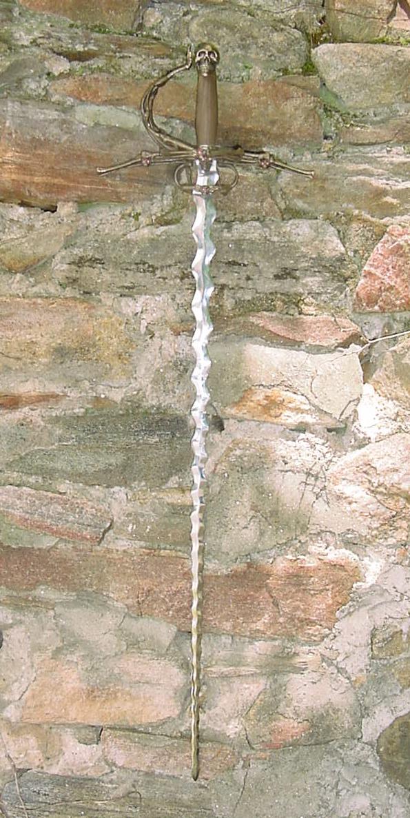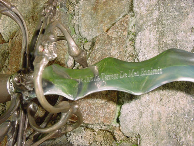 Custom made kris rapier blade engraved with "I am the terror of my enemies" in french