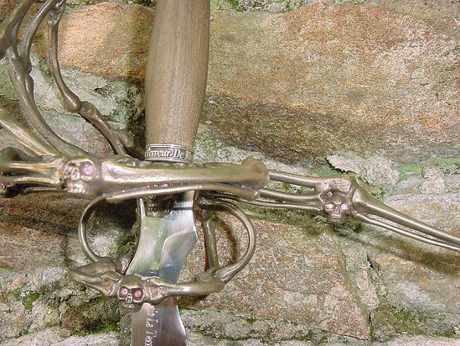 Walnut handle with silver rings "I am the terror of my enemies" in french